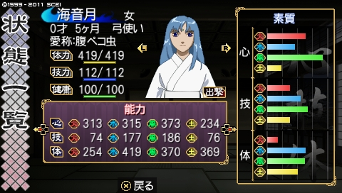 一族の能力スクショですが、次期当主予定・海音月のものだけ撮ってありました。