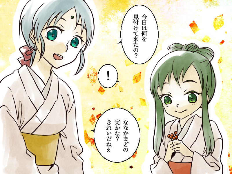 朱丸(あかねまる)と紅丸(べにまる)、弓使いと薙刀士です。