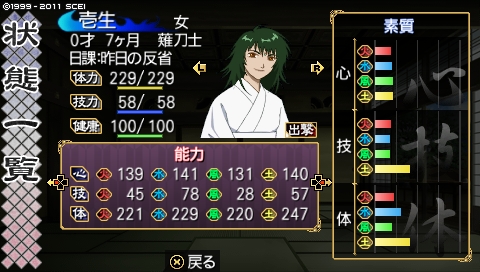 壱生の長所といえば……土……かな。風素質伸ばしたかったのですが奉納点とお相手見ながら決めましょうか。